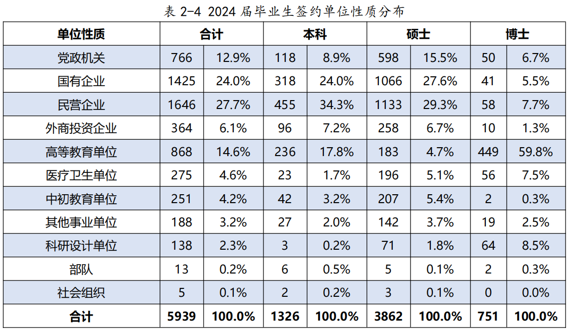 想进体制内或国企的家庭可以重点关注——8.9%的本科生进入党政机关,24.0%进入国有企业,17.8%进入高等教育单位,三类稳定岗位加起来超五成,就业安全感拉满。