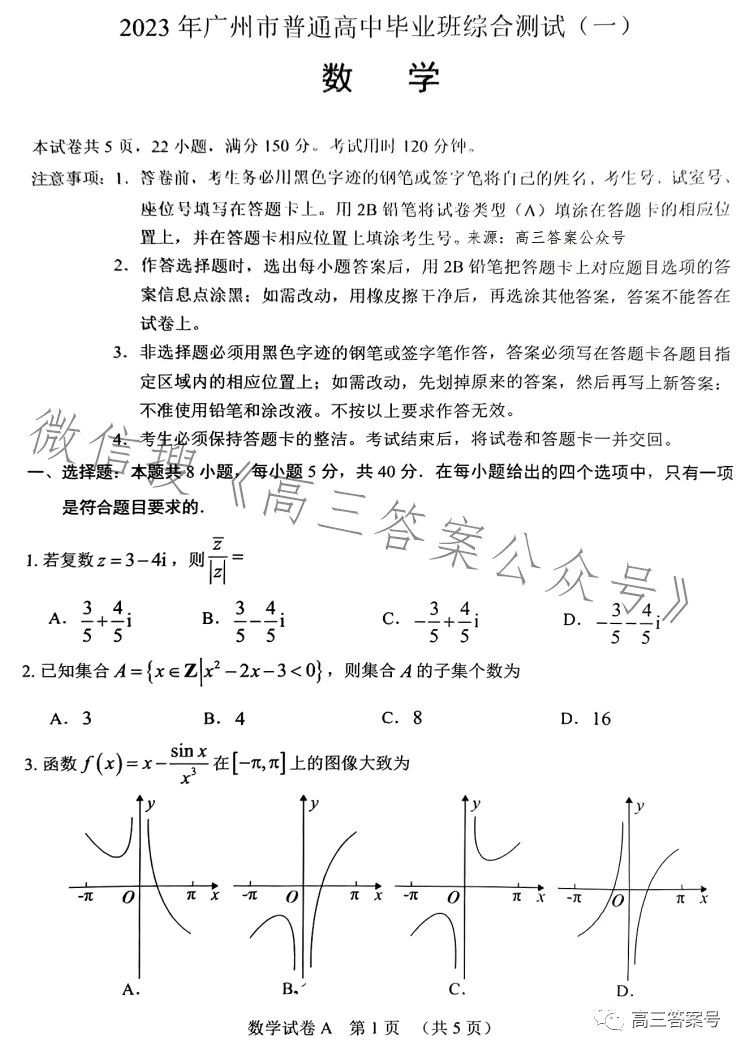 一.2023广州一模数学试题解析