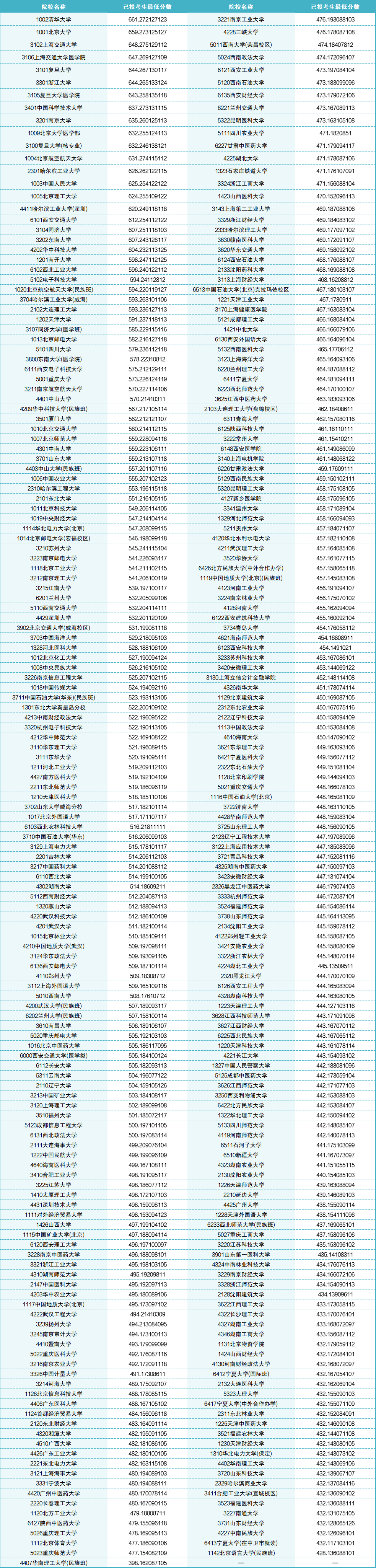 分数较高的院校依旧以985、211院校为主,其中在640分以上的有7所,均为985院校:清华大学最低分为661分,北京大学最低分659分,上海交通大学最低分648分、上海交通大学医学院最低分647分等。