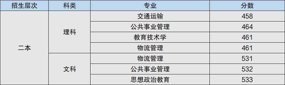 从学校招生网数据可知,该校在二本批次的招生分数并不高,考生高考成绩仅需高于二本省控线 40 余分即可被录取。