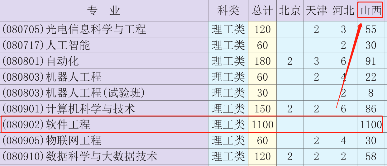 太原理工大学的软件工程专业在本科二批层次招生。该专业之所以招收二本批次的考生,主要原因是响应山西省教育厅的要求,保护本省考生,因此该专业仅面向山西省的考生招生,而且学费较高。下图为学校2020年软件工程专业的招生计划。