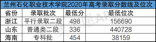 该校2020年在全国招生省份的录取分数线及位次如下: