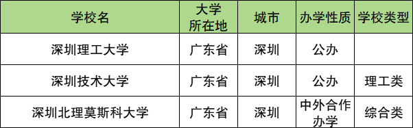 以上是深圳市二本大学中综合实力比较强的高校,除此之外完整名单如下: