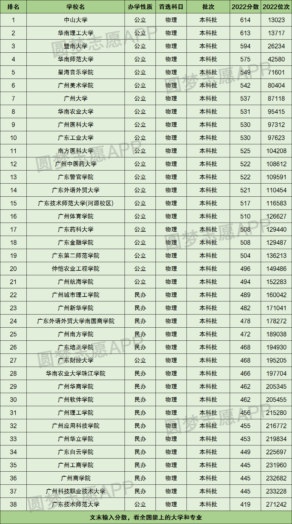 一、广州本科大学分数线排名物理类