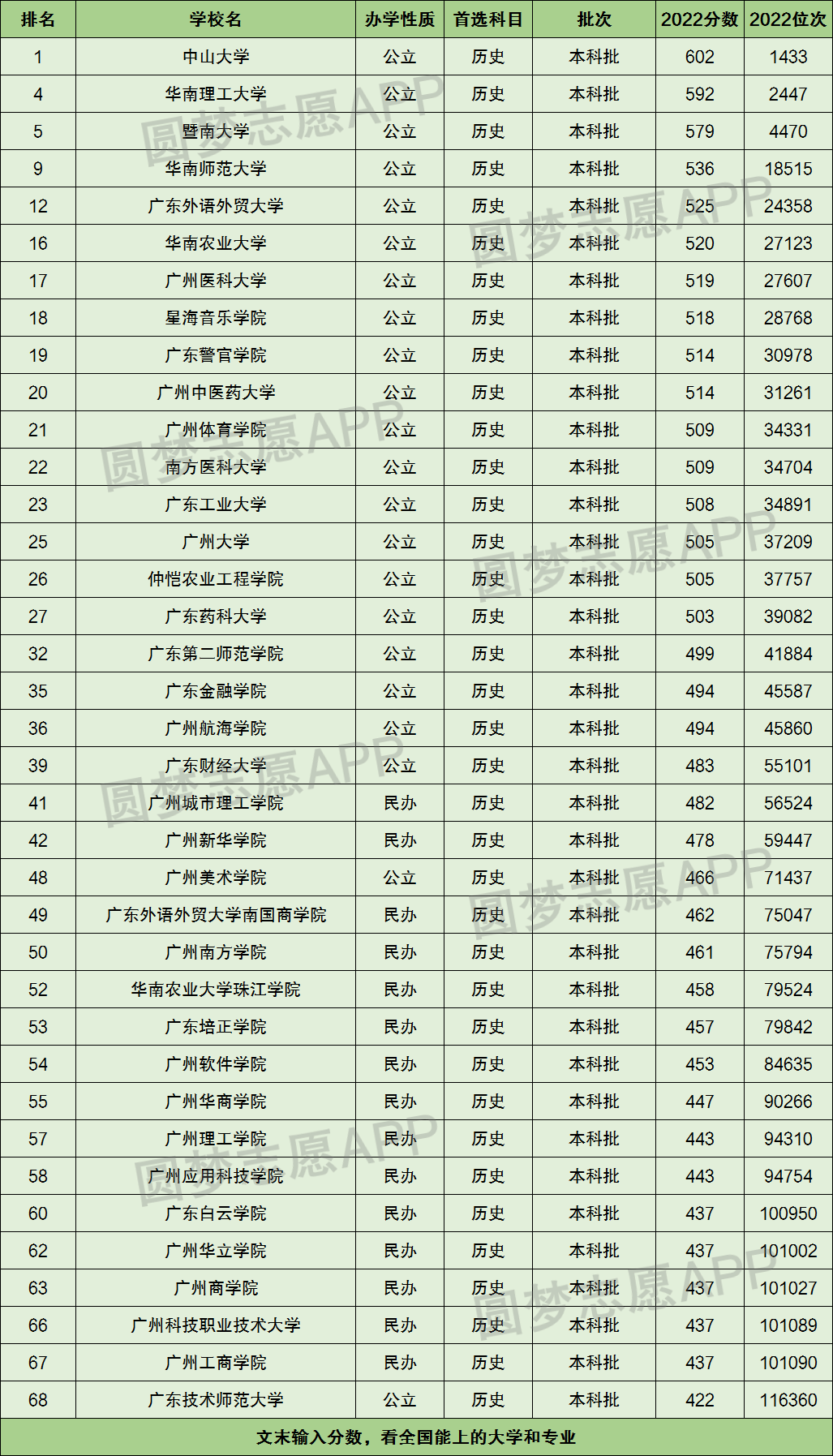 二、广州本科大学分数线排名历史类