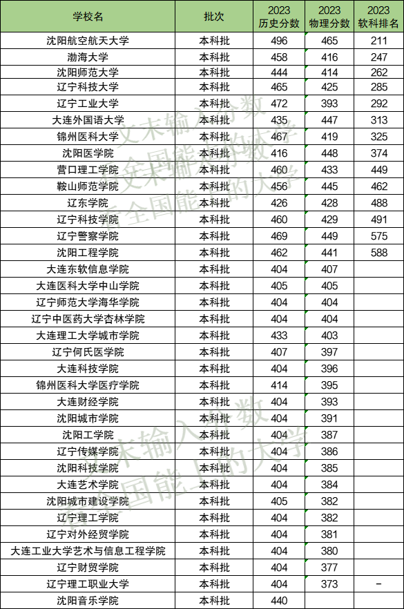 2023年在辽宁历史最低444分、物理最低414分。