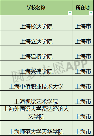上海所有民办本科院校有上海杉达学院、上海立达学院、上海建桥学院、上海兴伟学院、上海中侨职业技术大学、上海视觉艺术学院等8所。
