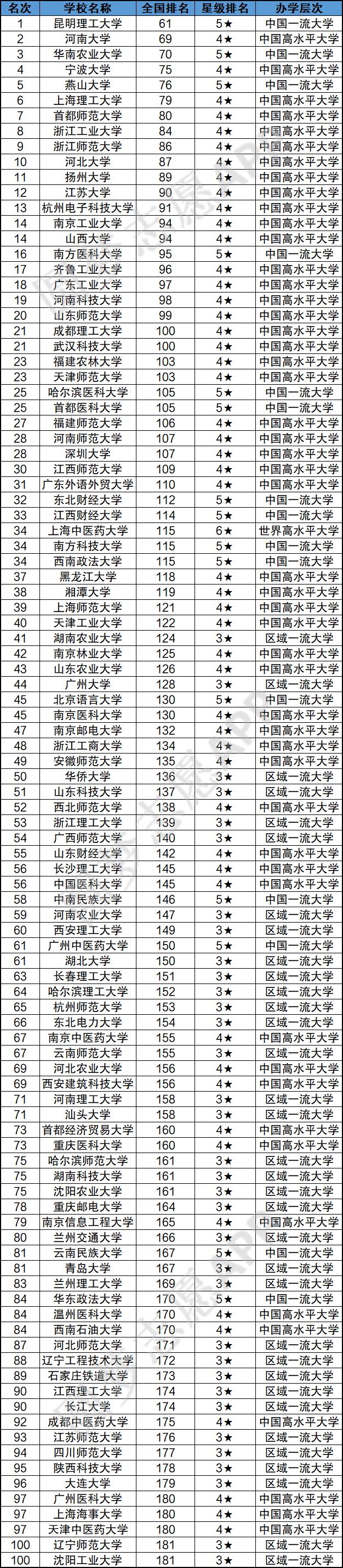 小编通过查询校友会2020年中国大学排名,整理出了校友会2020中国非211大学排名,其中昆明理工大学、河南大学、华南农业大学位居前三,可见这三所高校是所有非211院校里实力最强的,非常值得考生报考。具体排名如下:
