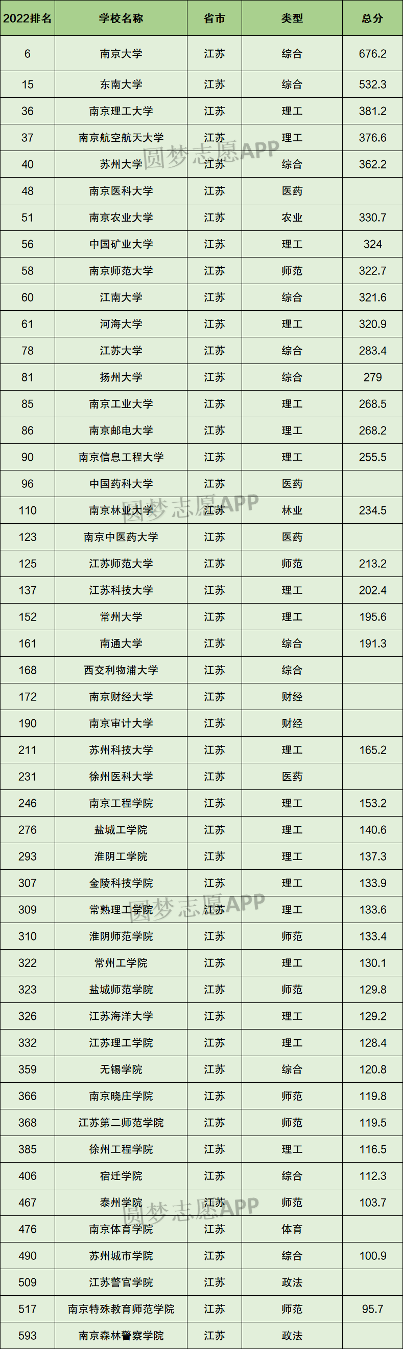 根据软科排名可知,江苏省内最好的大学分别为南京大学(全国第6)、东南大学(全国第15)、南京理工大学(全国第36)、南京航空航天大学(全国第37)、苏州大学(全国第40)。
