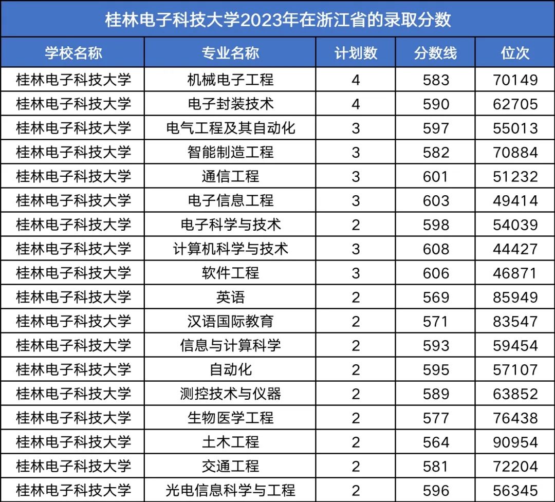 下文为大家整理了桂林电子科技大学2023年在浙江、山东的录取分数线,供大家参考。