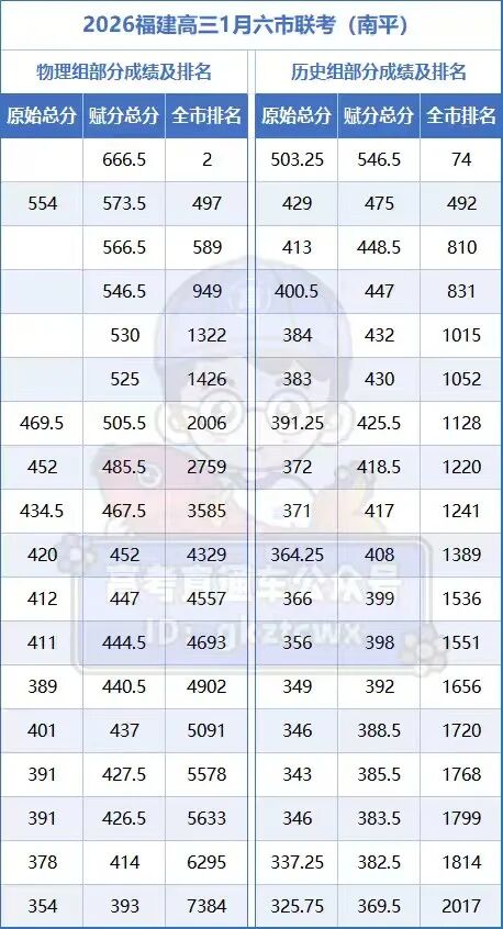 2、2026福建六市联考南平成绩赋分及排名: