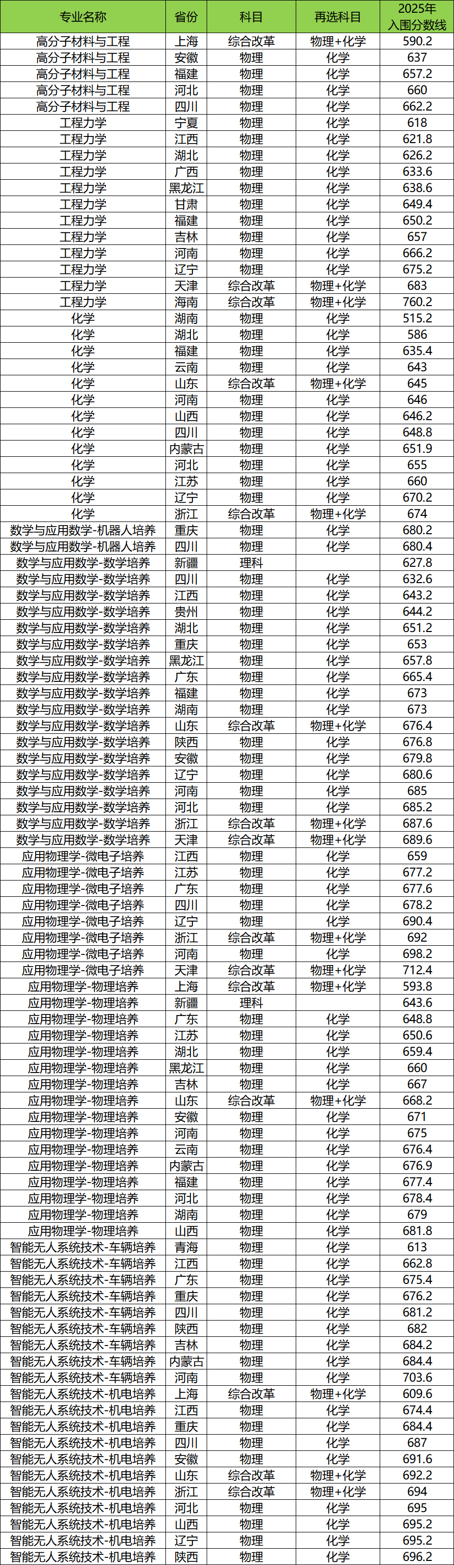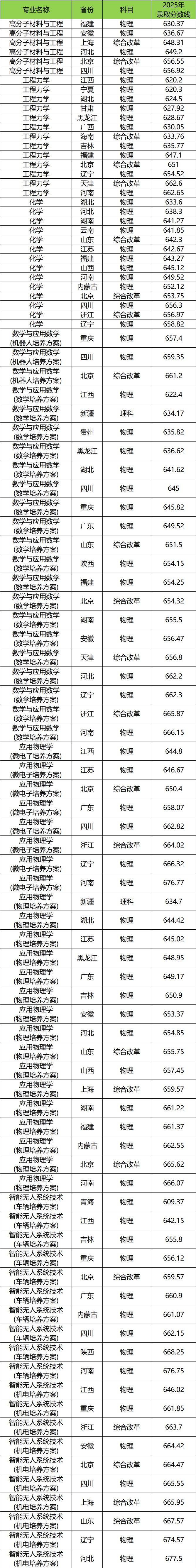 安徽:最低637分入围,高分子材料与工程;