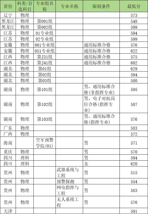 二、空军预警学院录取分数线2024
