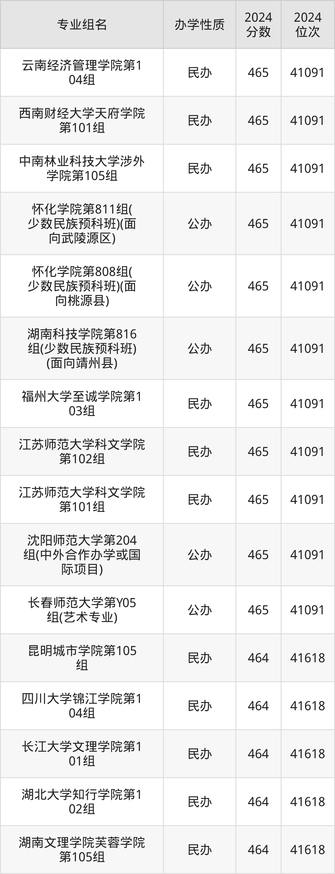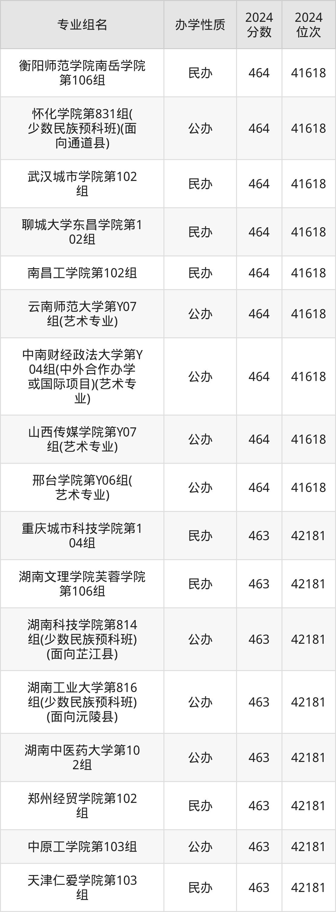 2024年湖南历史组本科线是438分,线上26分,即464分。本文筛选463分到465分之间的大学名单汇总。