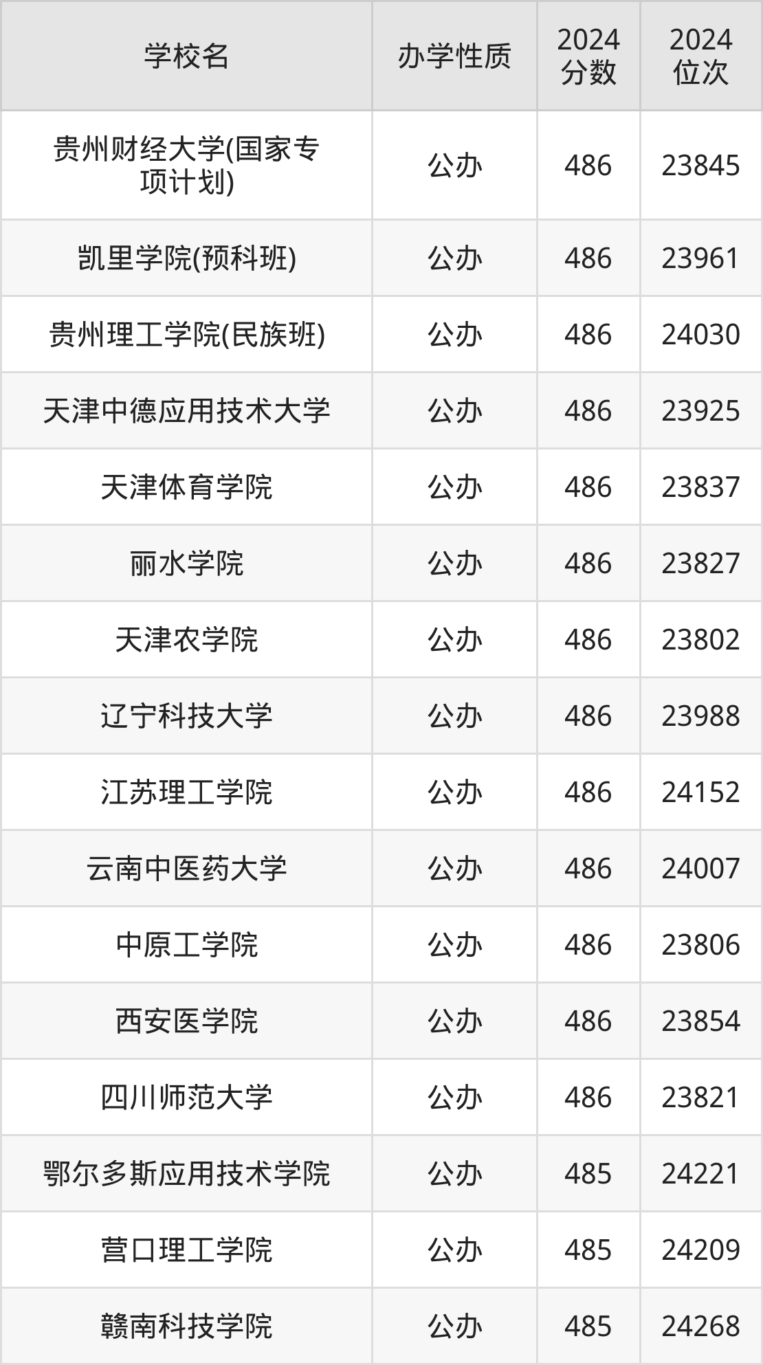 2024年贵州历史组本科线是442分,线上43分,即485分。本文筛选484分到486分之间的大学名单汇总。