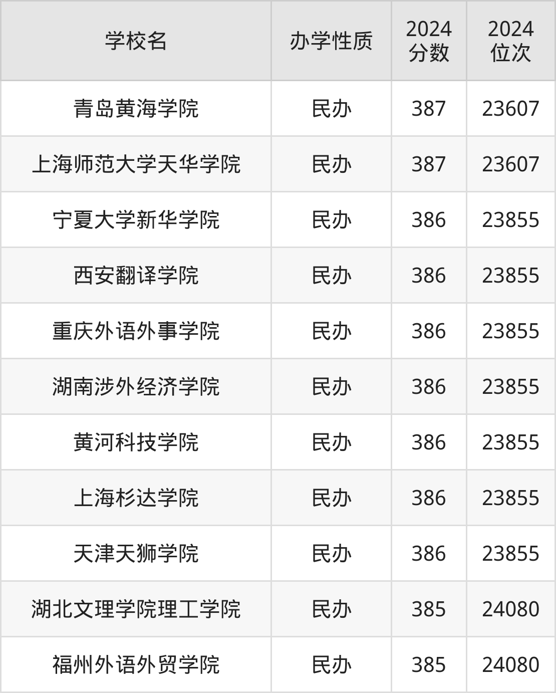 2024年宁夏理科二本线是371分,线上15分,即386分。本文筛选385分到387分之间的大学名单汇总。