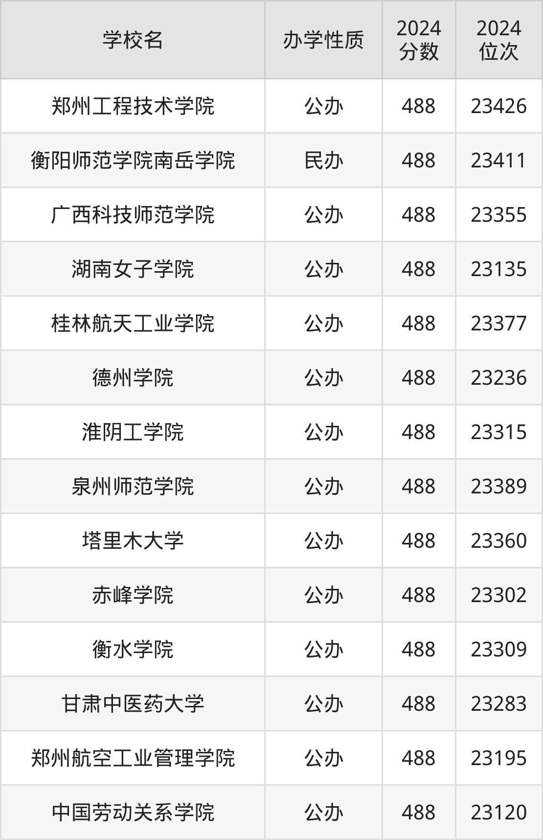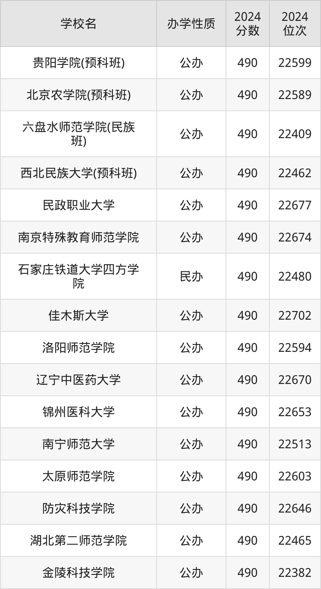 2024年贵州历史组本科线是442分,线上47分,即489分。本文筛选488分到490分之间的大学名单汇总。