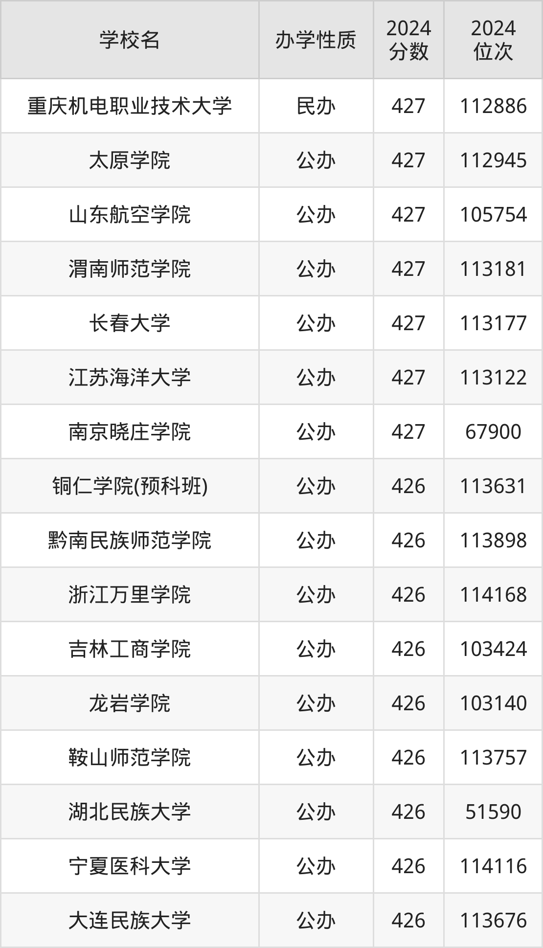 2024年贵州物理组本科线是380分,线上47分,即427分。本文筛选426分到428分之间的大学名单汇总。