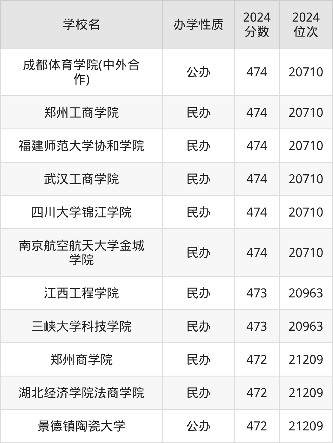本科线上45分左右的历史组本科生可以报考的学校多数为民办本科,能上的公办本科有2所,包括474分的成都体育学院(中外合作)、472分的景德镇陶瓷大学。