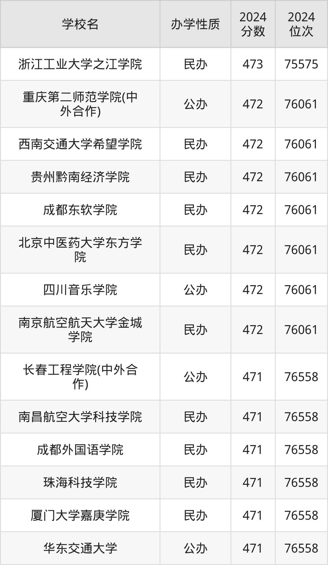 2024年重庆物理组本科线是427分,线上45分,即472分。本文筛选471分到473分之间的大学名单汇总。