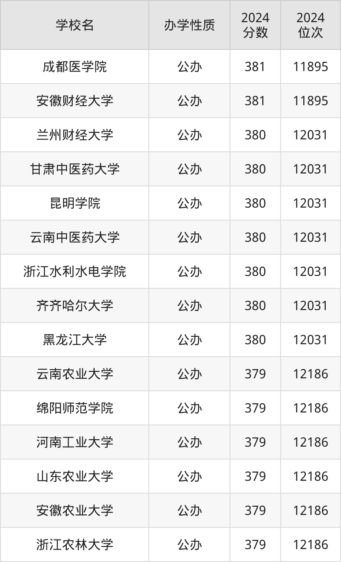 2024年青海理科二本线是325分,线上55分,即380分。本文筛选379分到381分之间的大学名单汇总。