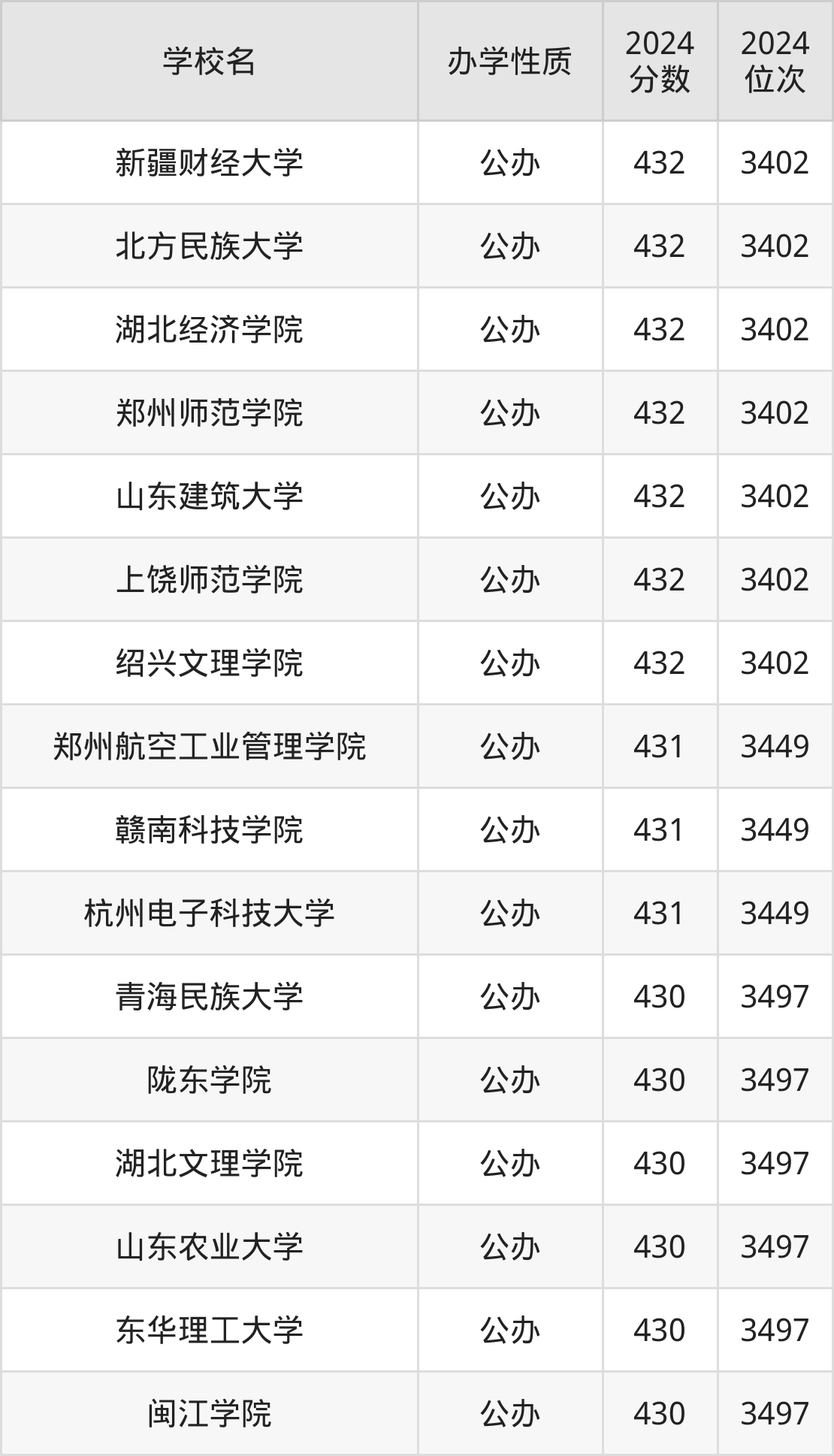 2024年青海文科二本线是382分,线上49分,即431分。本文筛选430分到432分之间的大学名单汇总。