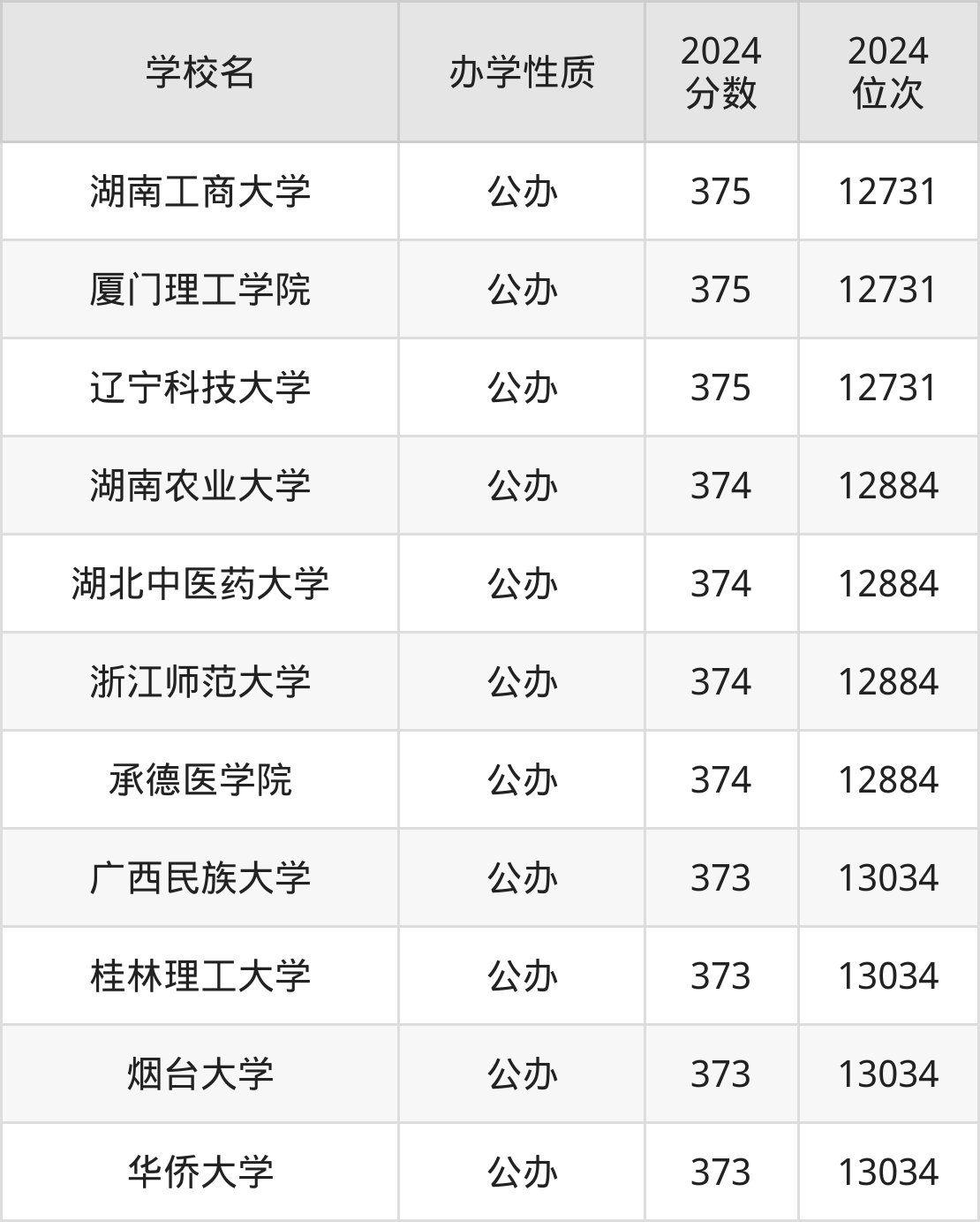 2024年青海理科二本线是325分,线上49分,即374分。本文筛选373分到375分之间的大学名单汇总。