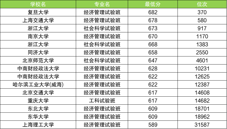 上海交通大学(经济管理试验班)最低分678分,对应位次580名;