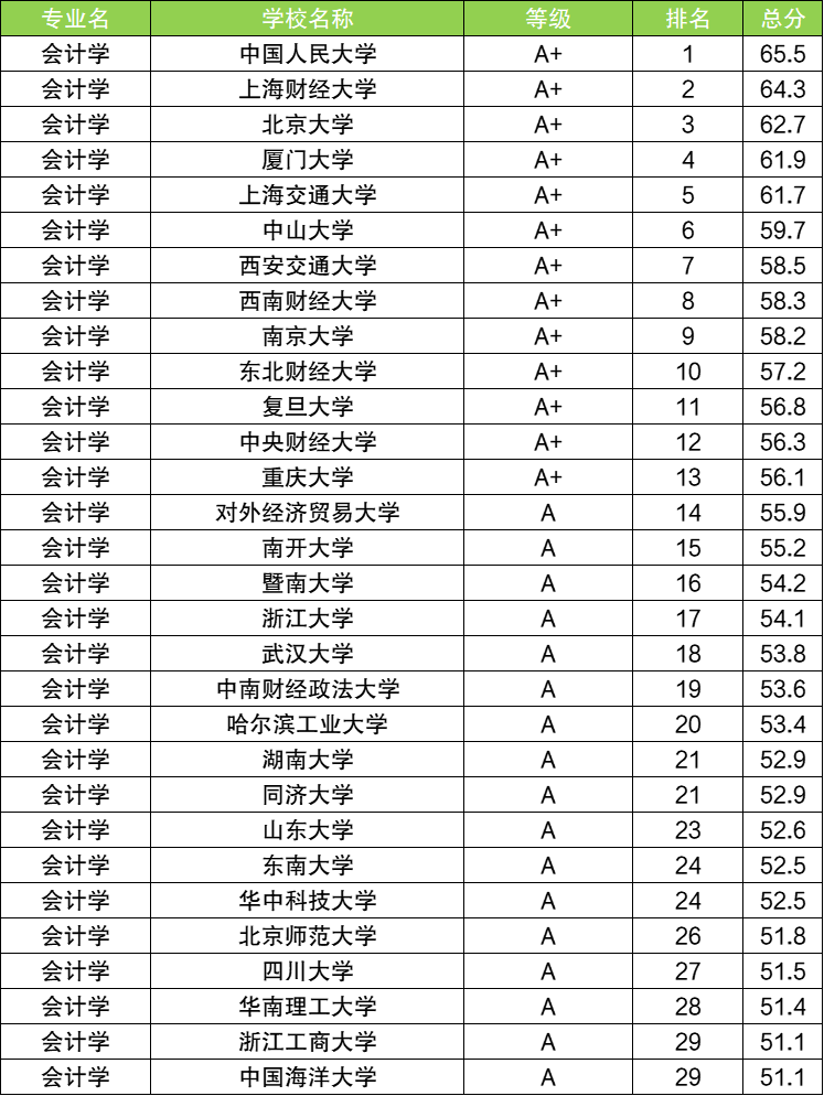 按照2023年软科发布的全国会计学专业大学排名数据来看,我国会计学最好的院校是中国人民大学,它在全国排名第一,其次是上海财经大学、北京大学、厦门大学以及上海交通大学。