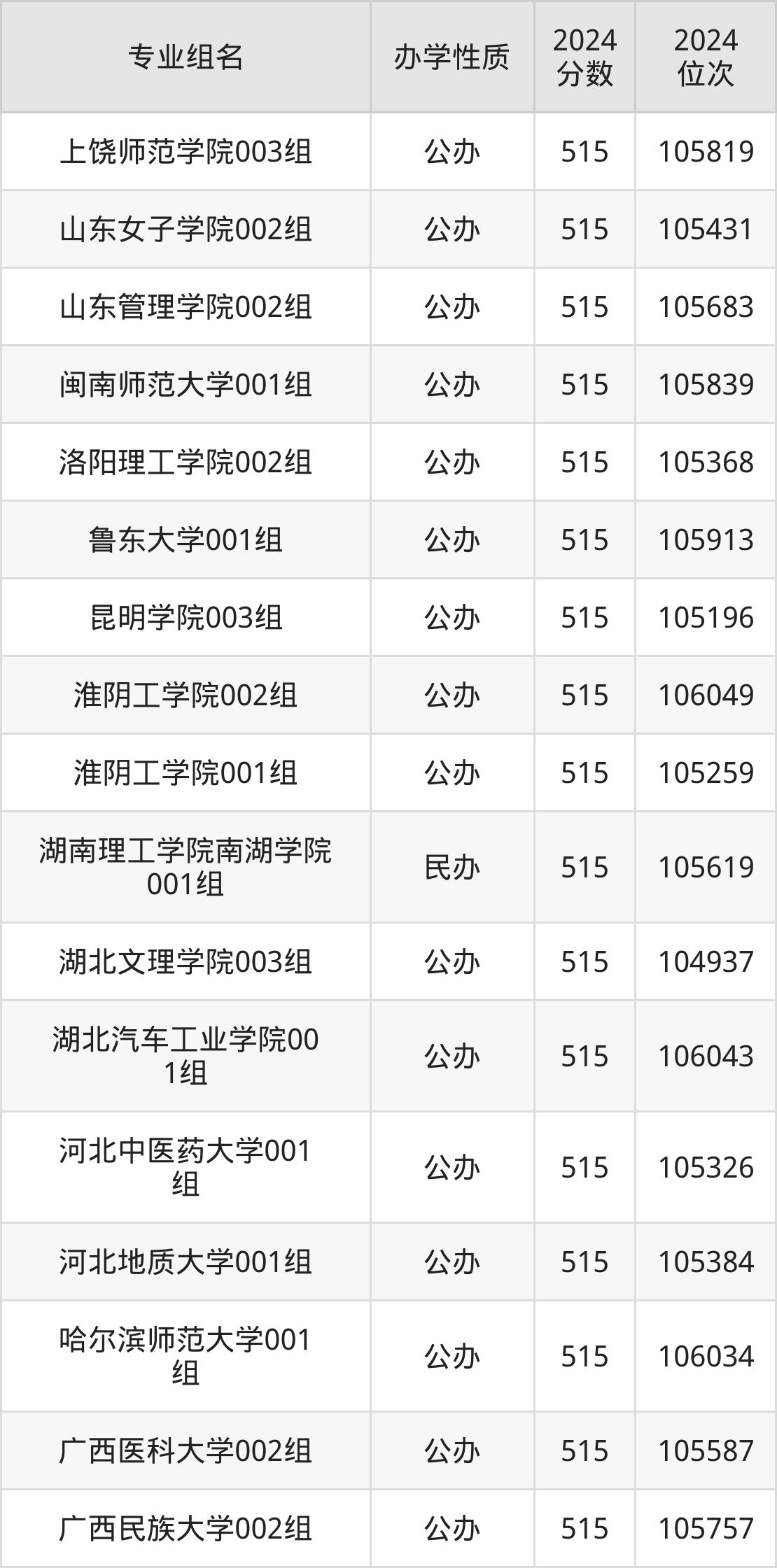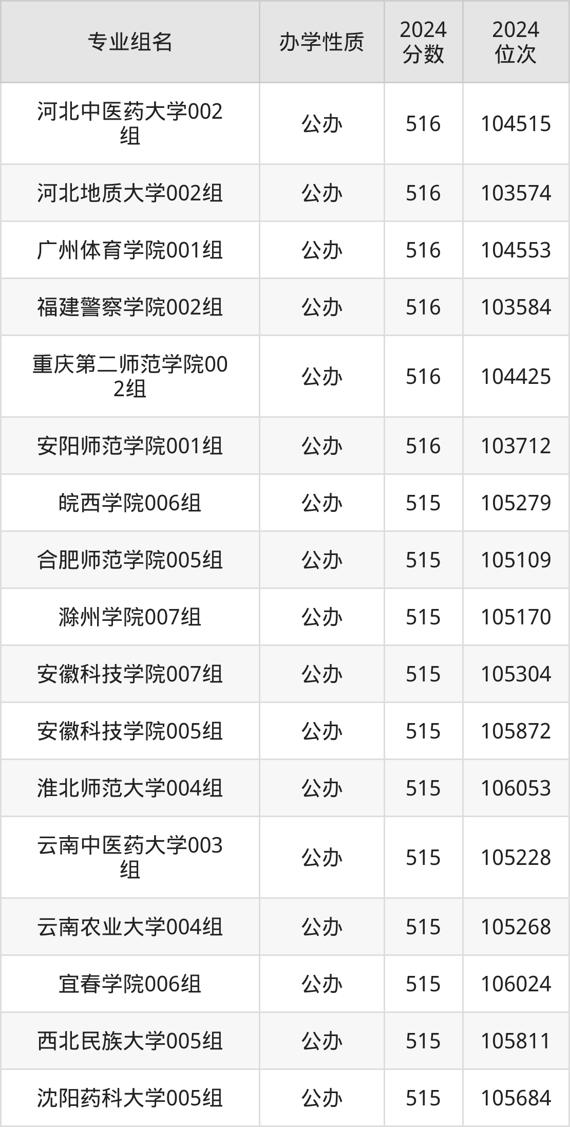 2024年安徽物理组本科线是465分,线上50分,即515分。本文筛选514分到516分之间的大学名单汇总。