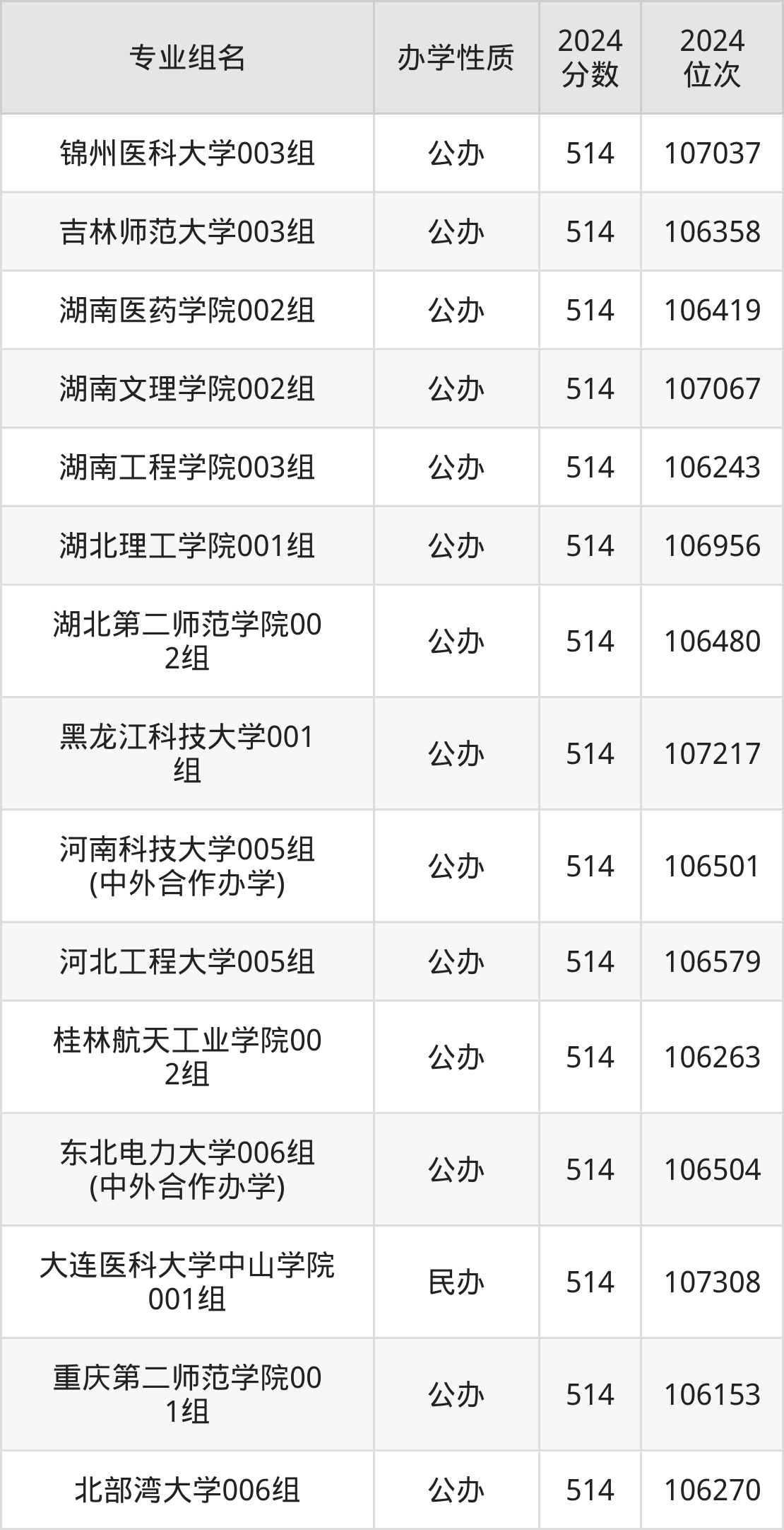 本科线上50分左右的物理组本科生可以报考的学校多数为公办本科,能上的民办本科有3所,包括515分的湖南理工学院南湖学院001组、514分的昆明医科大学海源学院001组、514分的大连医科大学中山学院001组。