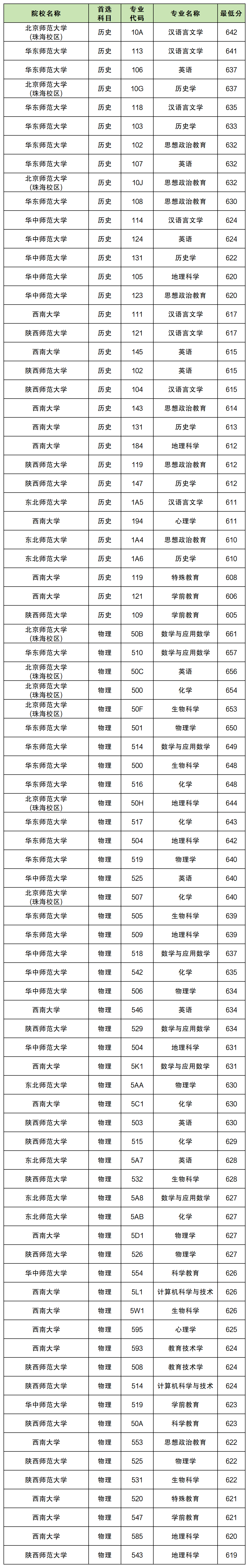 历史类:最低605分,对应陕西师范大学学前教育专业。