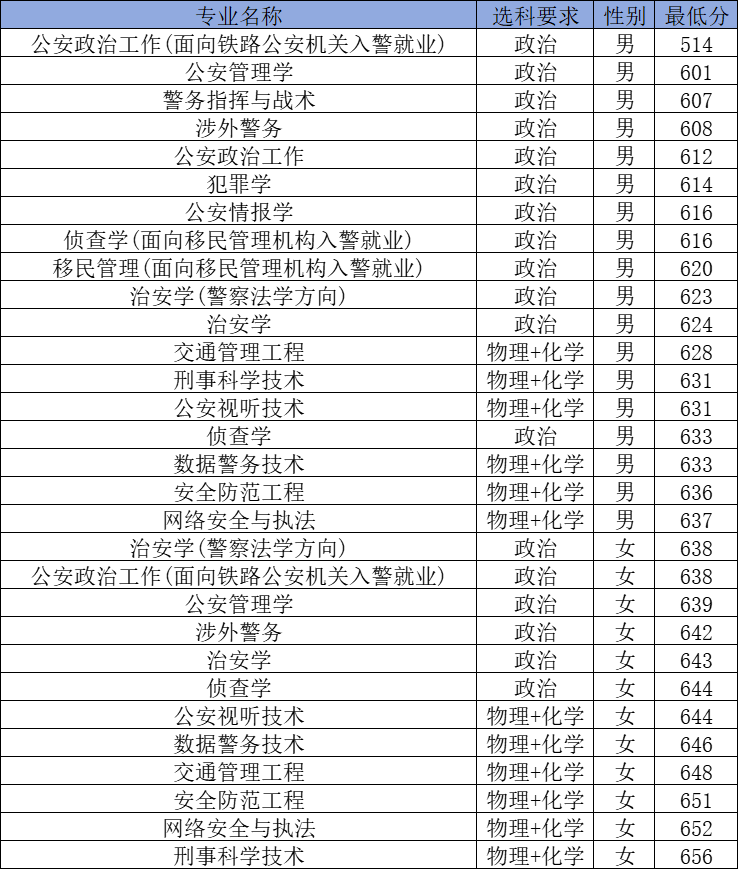 | 物理+化学 | 女 | 609 | 公安技术类(济南) |