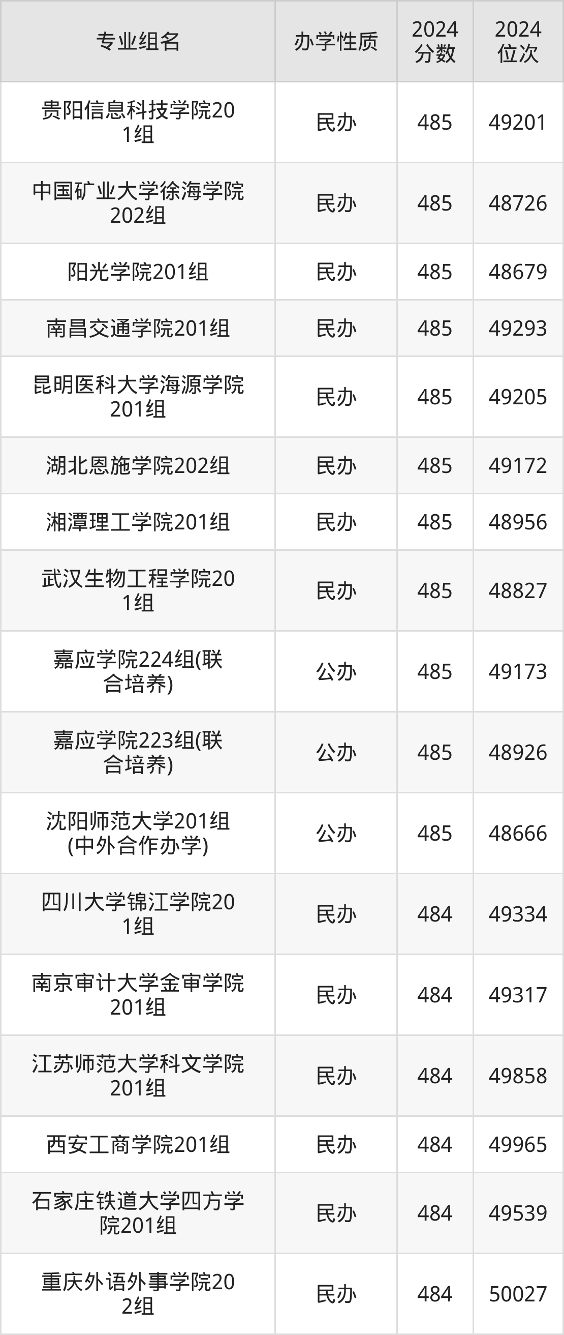 2024年广东历史组本科线是428分,线上57分,即485分。本文筛选484分到486分之间的大学名单汇总。