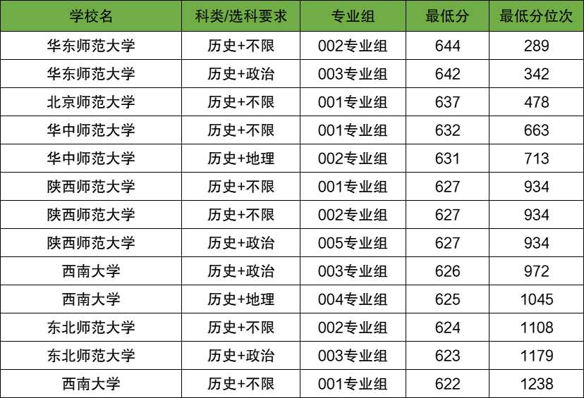 安徽历史类2025年本科分数线为477分、特控分数线为515分,在安徽历史类招生的国家公费师范生院校有6所,收分均在特控分数线以上。