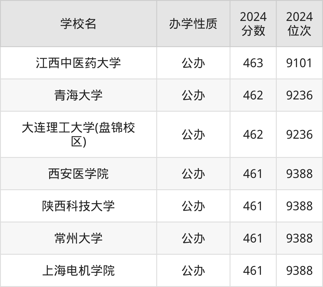 2024年宁夏理科二本线是371分,线上91分,即462分。本文筛选461分到463分之间的大学名单汇总。