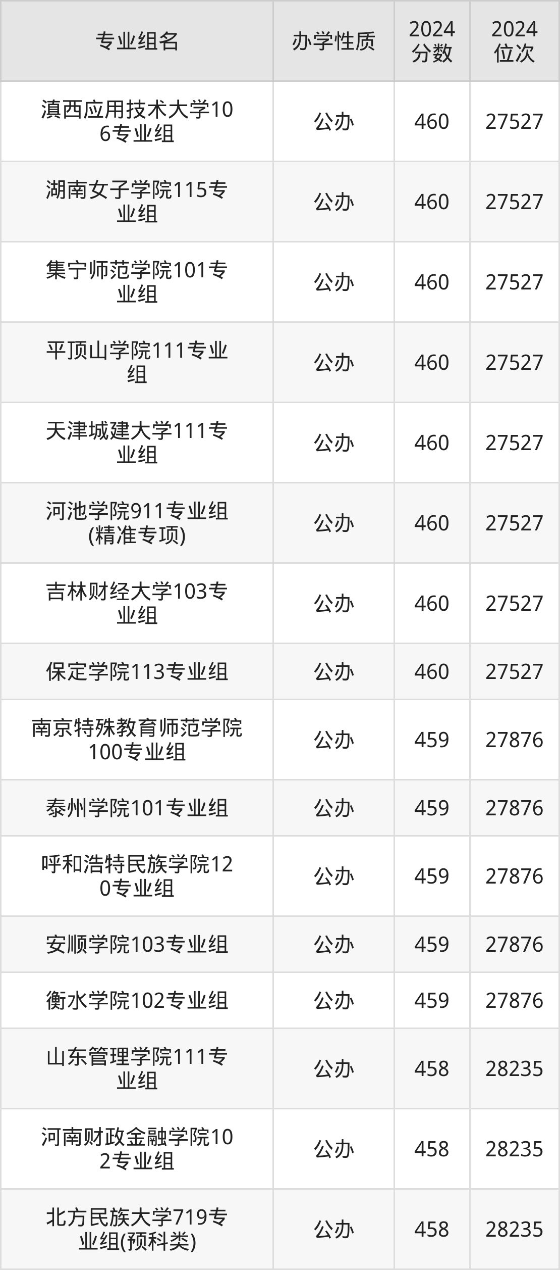 2024年广西历史组本科线是400分,线上59分,即459分。本文筛选458分到460分之间的大学名单汇总。
