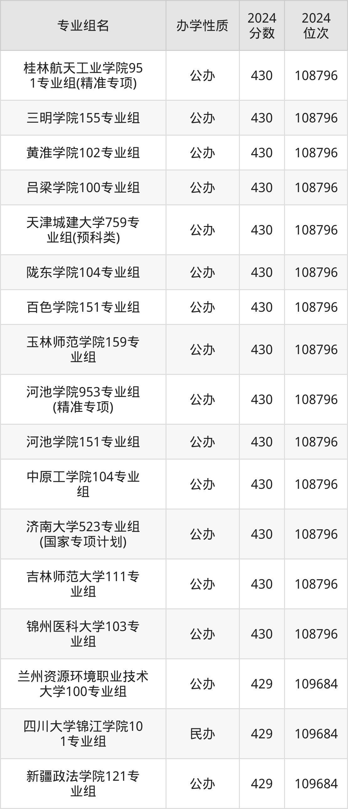 2024年广西物理组本科线是371分,线上59分,即430分。本文筛选429分到431分之间的大学名单汇总。