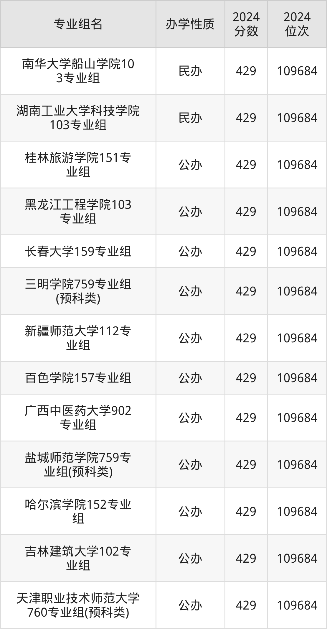 本科线上59分左右的物理组本科生可以报考的学校多数为公办本科,能上的民办本科有4所,包括431分的珠海科技学院102组、429分的四川大学锦江学院101组、429分的南华大学船山学院103组、429分的湖南工业大学科技学院103组。