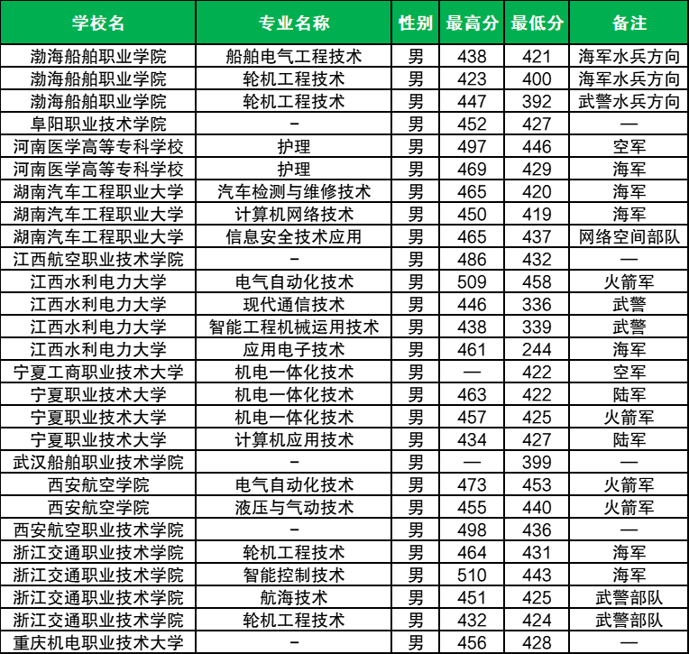1、渤海船舶职业学院:2025年山东定向士官录取分数范围392分-447分,最低分专业是轮机工程技术(武警水兵方向、男);