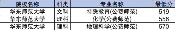 学校高校专项计划文科最低分数线是519分,对应的招生专业是特殊教育(公费师范);理科最低分数线是556分,对应的招生专业是化学(公费师范)。