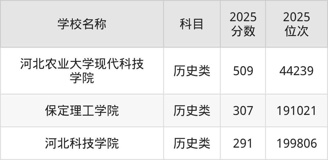 下文为2025年保定市民办二本大学在河北历史类录取分数线和位次排名表,供大家参考: