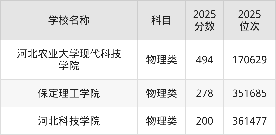 下文为2025年保定市民办二本大学在河北物理类录取分数线和位次排名表,供大家参考: