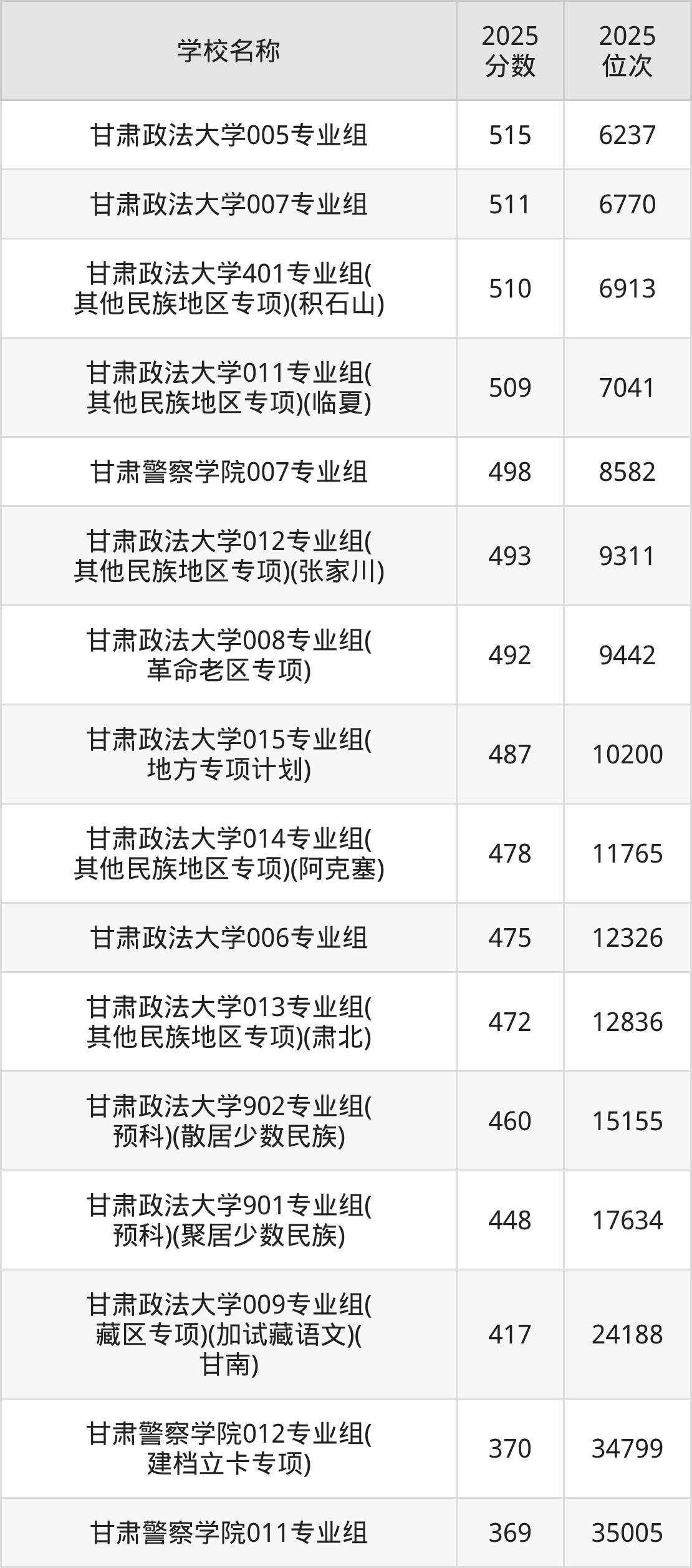 | 500 | 甘肃警察学院 |