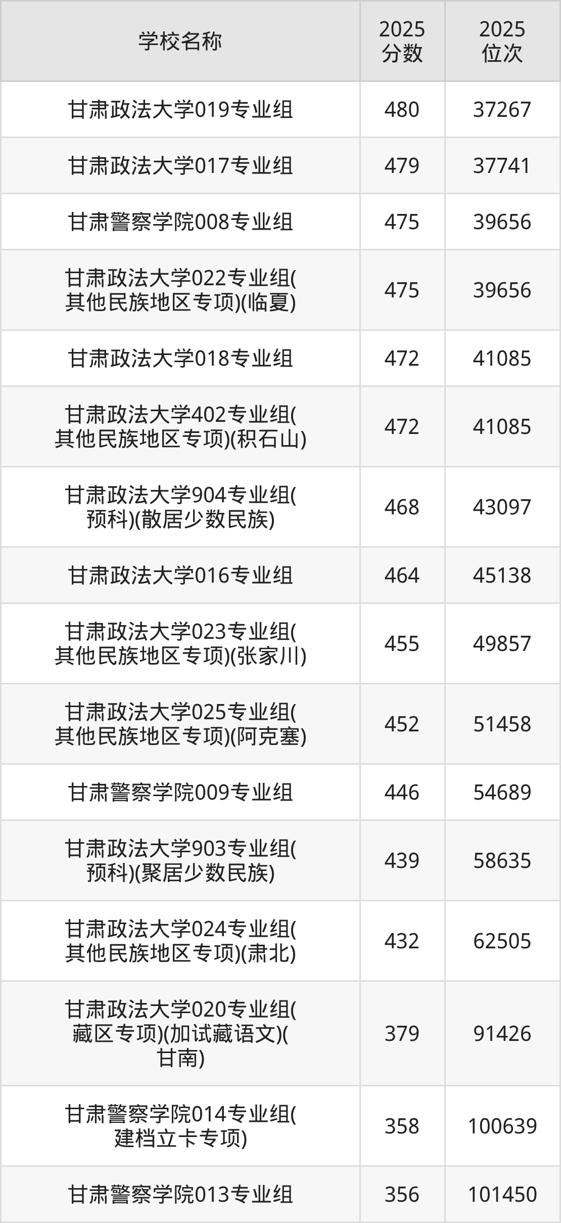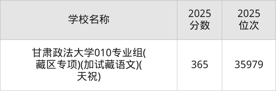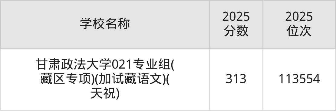 下文为2025年兰州市政法类大学在甘肃历史类录取分数线和位次排名表,供大家参考: