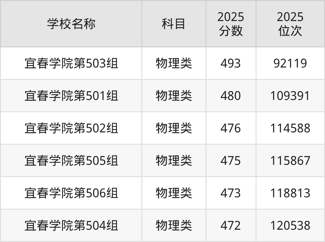 下文为2025年宜春市本科大学在江西物理类录取分数线和位次排名表,供大家参考: