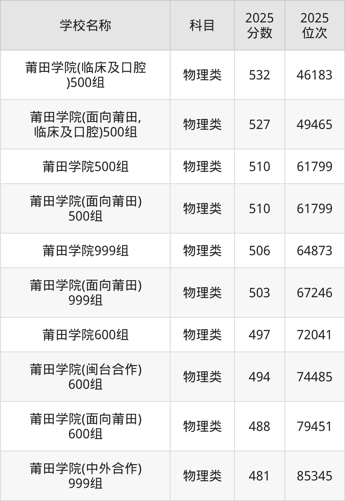 下文为2025年莆田市公办二本大学在福建物理类录取分数线和位次排名表,供大家参考: