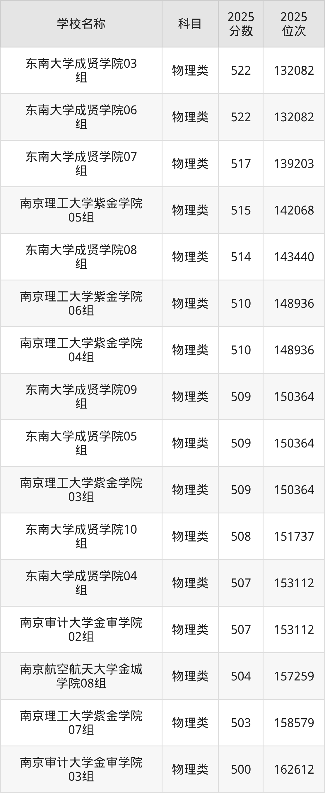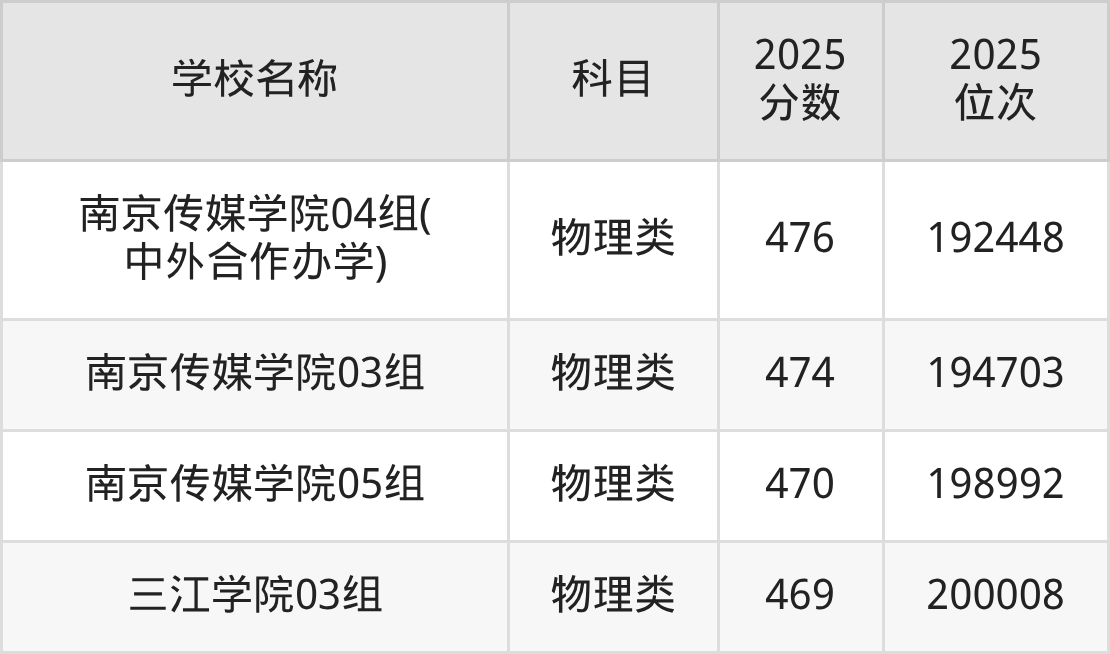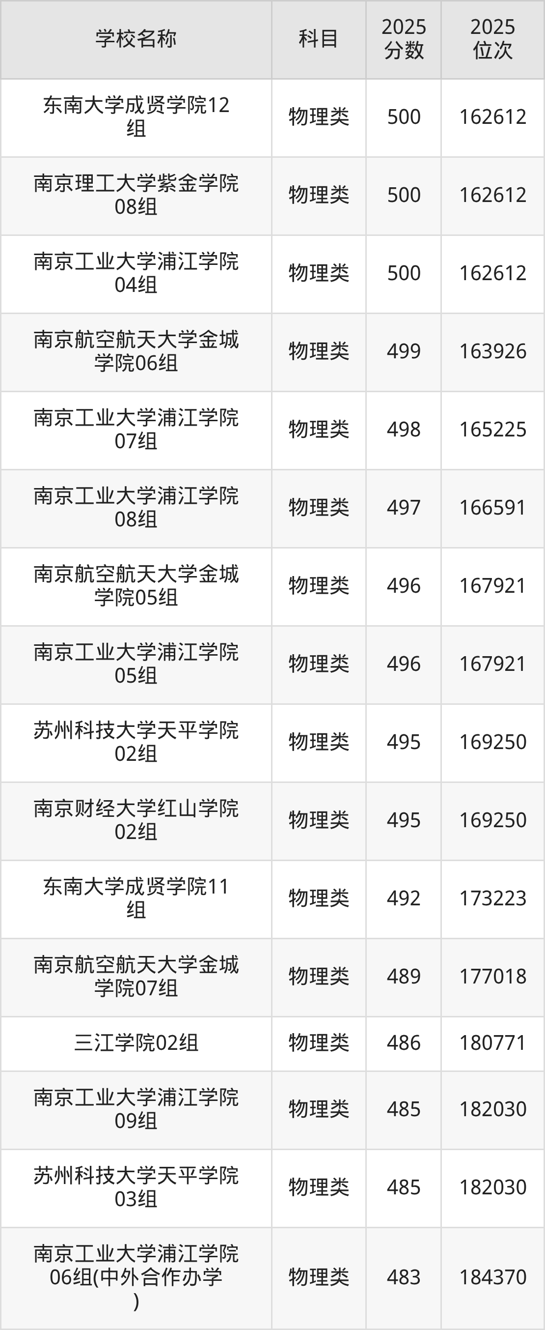 下文为2025年南京市民办二本大学在江苏物理类录取分数线和位次排名表,供大家参考: