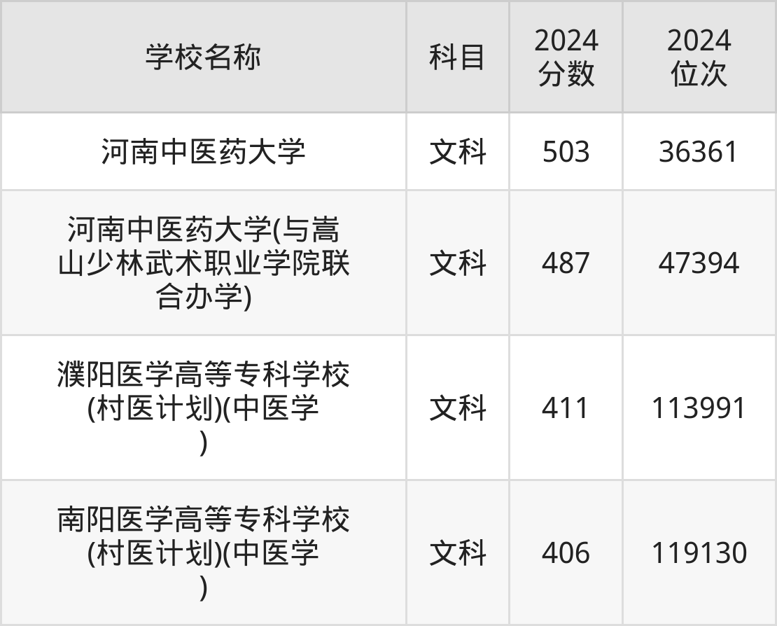 下文为2024年河南省中医药大学在河南文科录取分数线和位次排名表,供大家参考:
