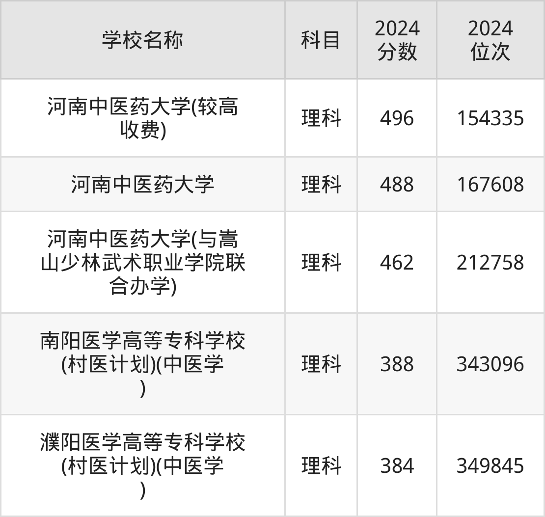 下文为2024年河南省中医药大学在河南理科录取分数线和位次排名表,供大家参考: